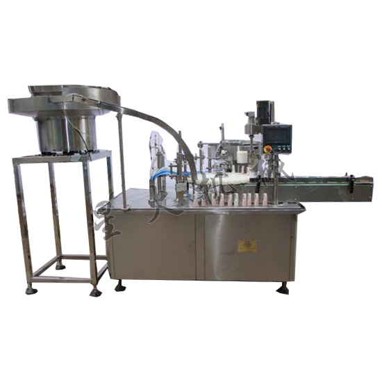 這款振蕩理瓶灌裝旋蓋一體機(jī)專門針對小劑量的藥液、口服液、飲料、保健品、香水等液體灌裝設(shè)計的 、尤其適用于1ml-10ml容量的灌裝 。采用單頭蠕動泵灌裝,316L不銹鋼材料;工作臺面以不銹鋼材料防護(hù),整機(jī)符合GMP要求。采用振蕩式理瓶、圓盤定位灌裝,有自動對口裝置,自動上蓋旋蓋,定量灌裝,計量準(zhǔn)確。特別適用于中小批量的生產(chǎn)可選購防護(hù)罩!