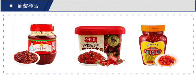醬料灌裝生產(chǎn)線主要用于灌裝含顆粒的半流體、膏體、豆豉醬料物料的灌裝如辣椒醬、豆豉醬、火鍋料、牛肉醬、香菇醬、郫縣紅油豆瓣醬等