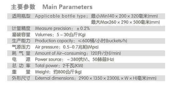 大桶灌裝生產(chǎn)線主要參數(shù)
